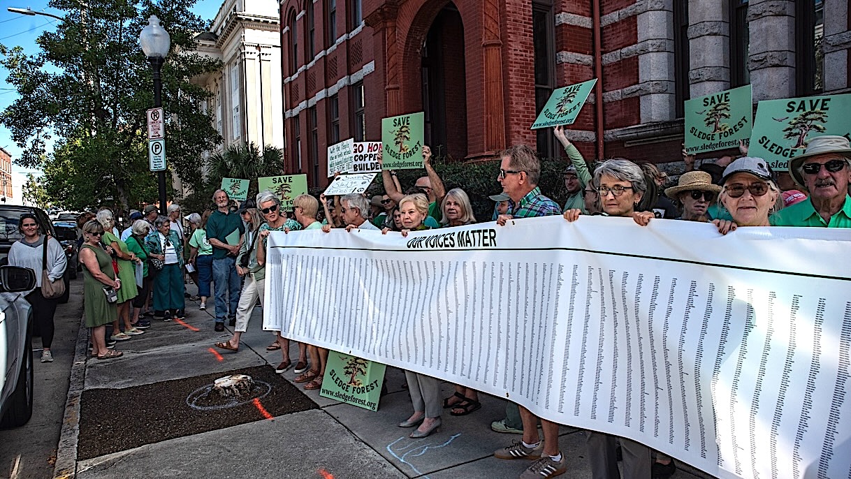 The fight to save Sledge Forest in New Hanover County, covered in the Steady State Herald this past spring, continues in earnest. As reported then, Hilton Bluffs—a massive, 4,000-unit development—pits county residents against Copper Builders, an outside developer. The proposal threatens what locals refer to as “The Last Forest.” The community’s resistance, spearheaded by the group Save Sledge Forest, has continued and grown,